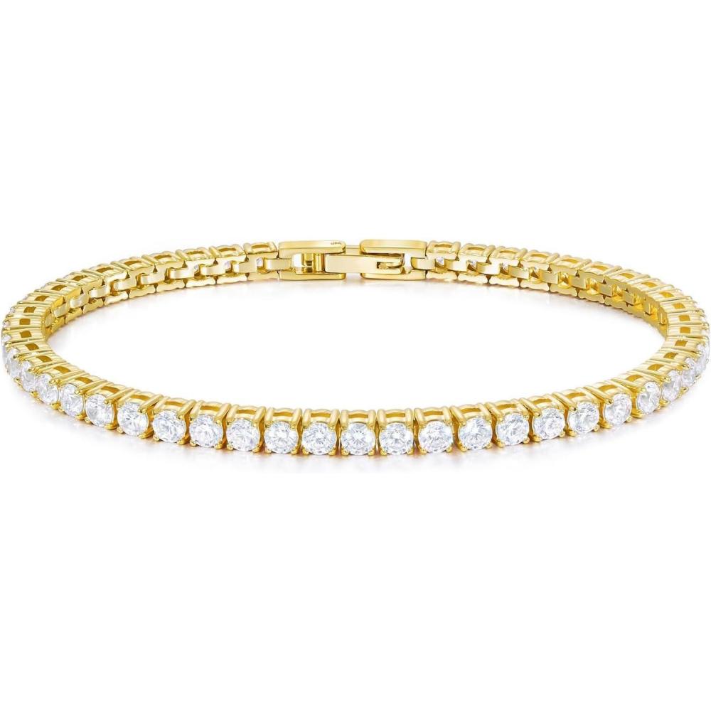 KissYan Tennis Bracelet for Women, 14K Gold Plated Classic Round Cubic Zirconia Simulated Diamond Bracelets Dainty Jewelry Gifts(Gold)