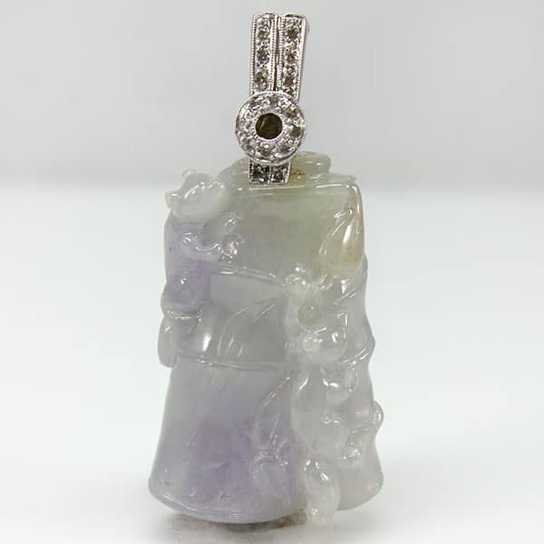 GIA CERTIFIED NATURAL GRADE A LAVENDER JADEITE JADE PENDANT W/ DIAMONDS