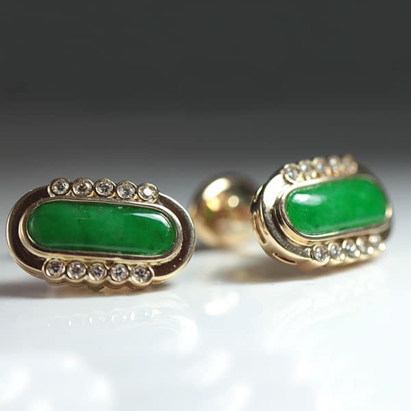 Apple Green Jade Diamond Oblong 18K Cufflinks