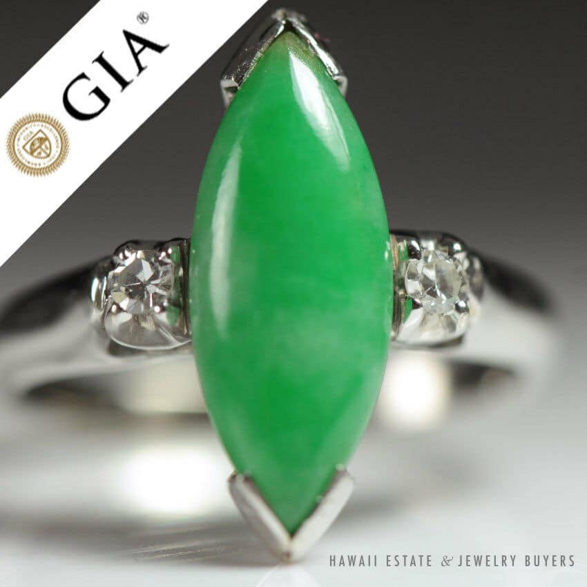 GIA CERTIFIED MARQUISE NATURAL JADE APPLE GREEN COLOR JADE RING GIA JADE SZ 5.25
