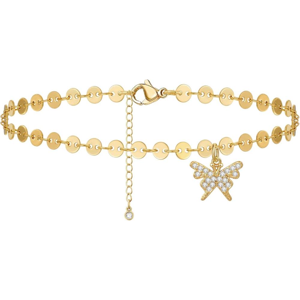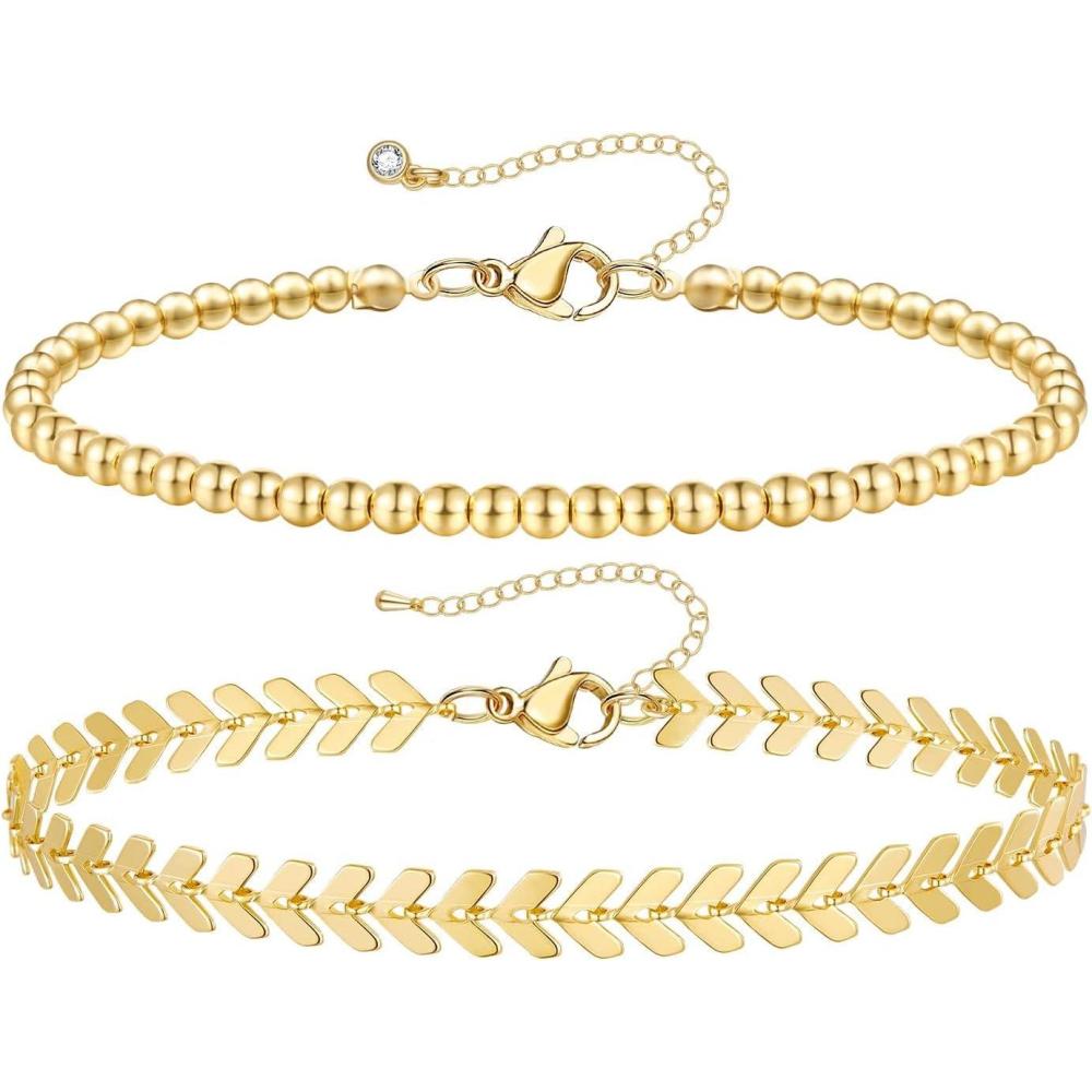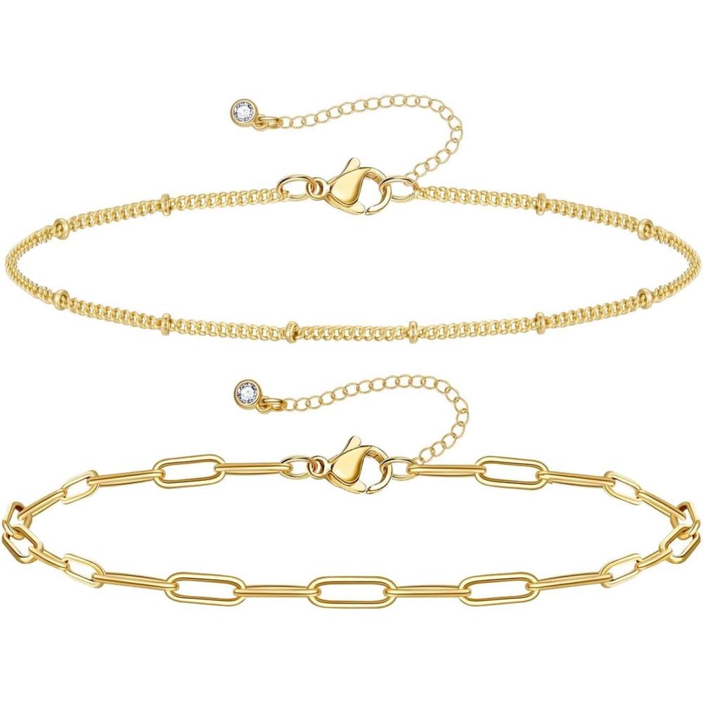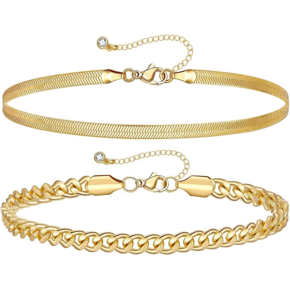 KissYan Gold Ankle Bracelets for Women, Dainty 14k Gold Plated Anklets Cuban Link Chain Ankles Adjustable Snake Tennis Anklet Bracelet Tiny Beach Foot Jewelry Gifts for Women Girls