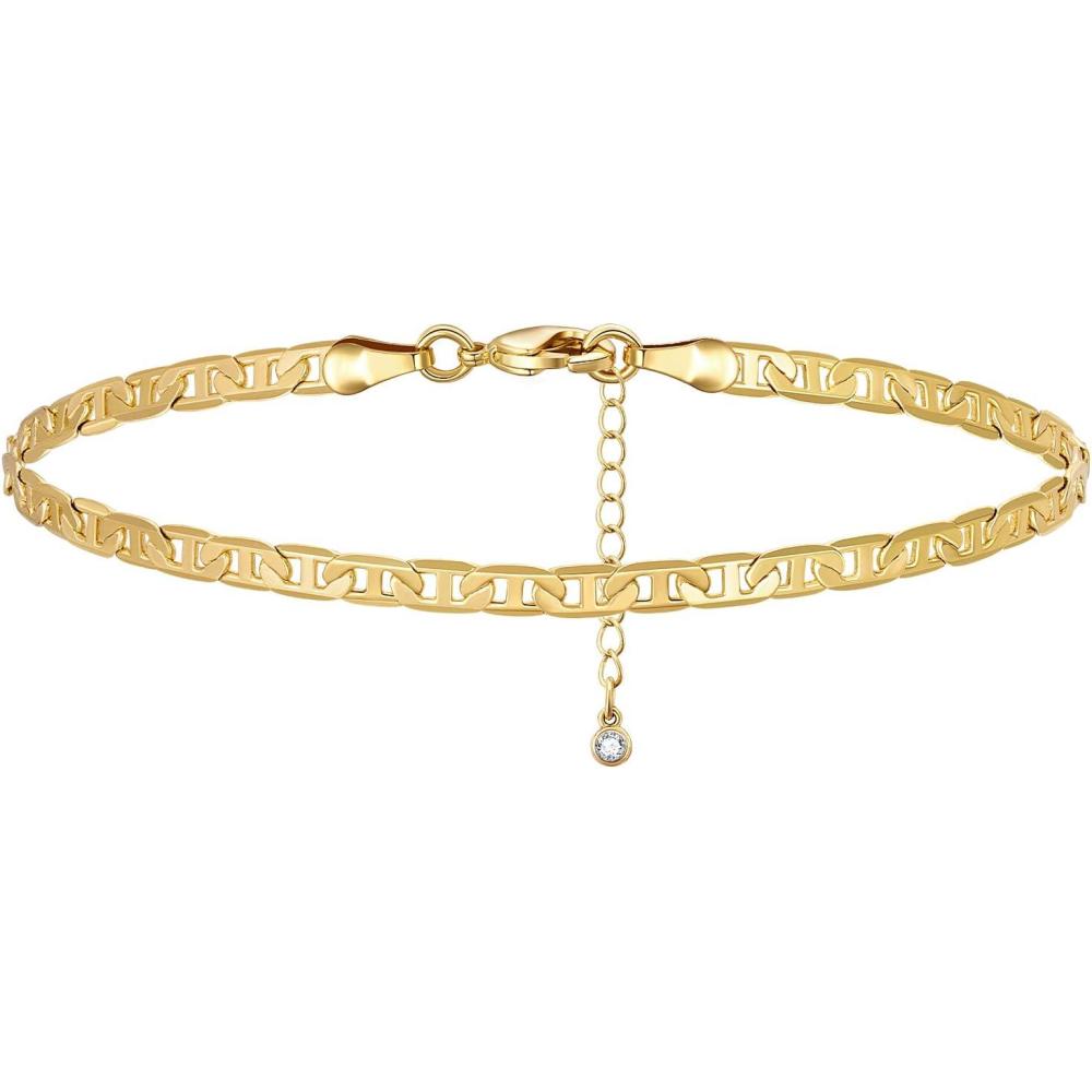 KissYan Gold Ankle Bracelets for Women, Dainty 14k Gold Plated Anklets Cuban Link Chain Ankles Adjustable Snake Tennis Anklet Bracelet Tiny Beach Foot Jewelry Gifts for Women