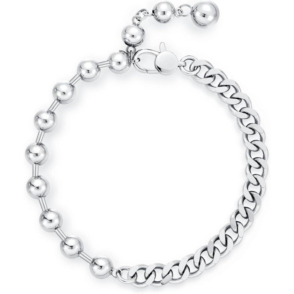 KissYan Gold Ankle Bracelets for Women, 14K Gold Plated Chunky Anklet Cuban Link Beaded with Big Clasp Adjustable Extender Summer Beach Foot Jewelry Gifts(Silver Cuban Beaded)